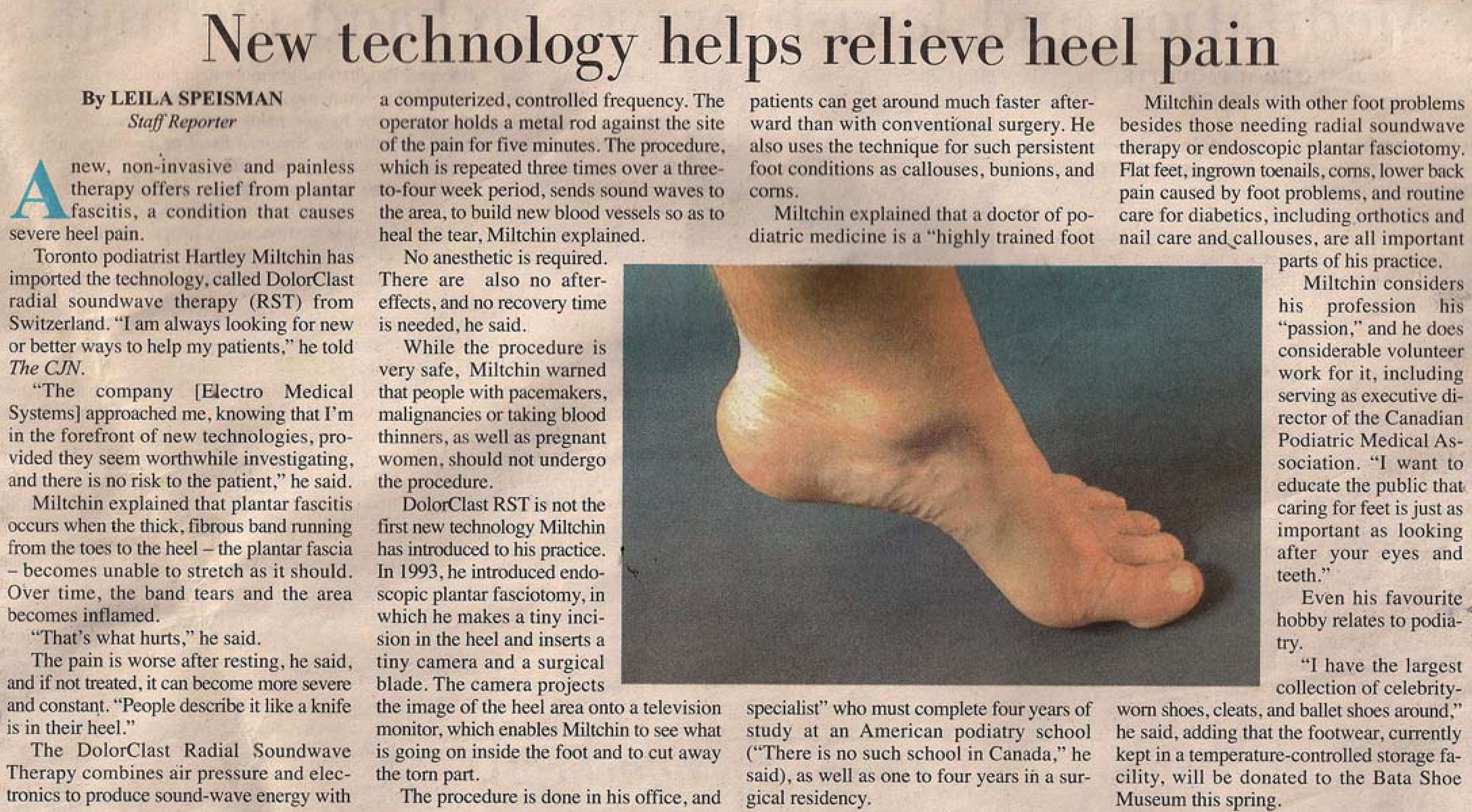 NEWSPAPER STORY: Our client Dr. Hartley Miltchin of ACCENT ON FEET was featured in a story about new technology to relieve heel pain.