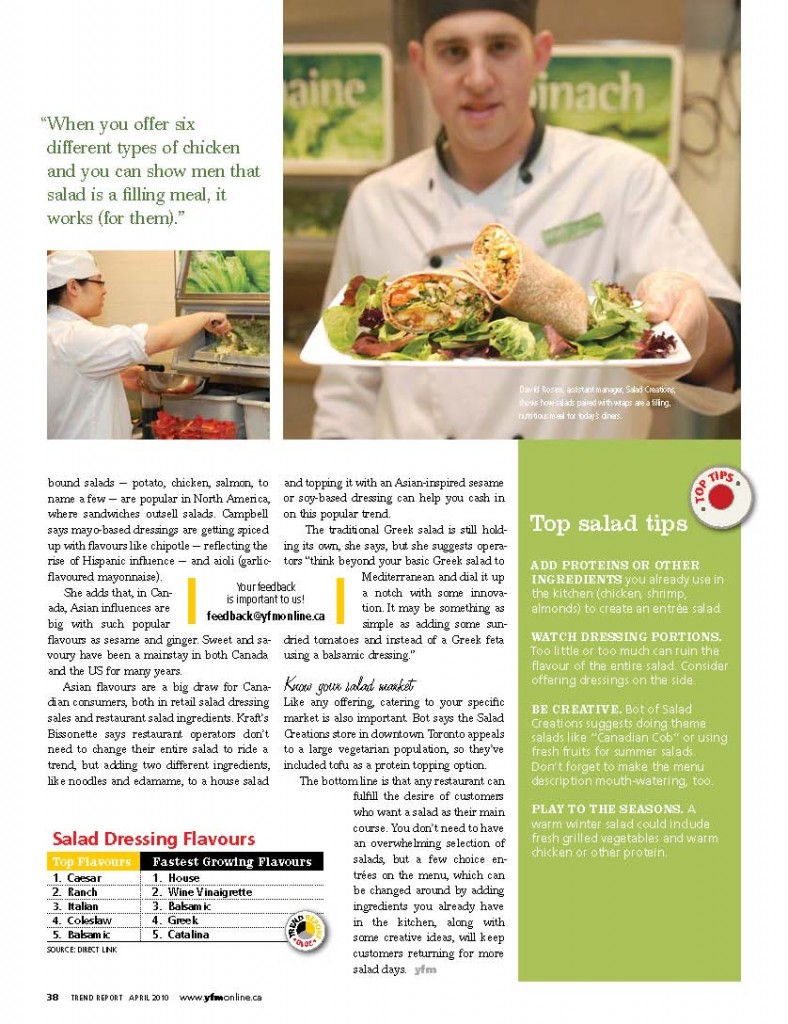 Magazine Story:: Our client Brenda Bot, President Of Salad Creations Canada discussed healthy eating.