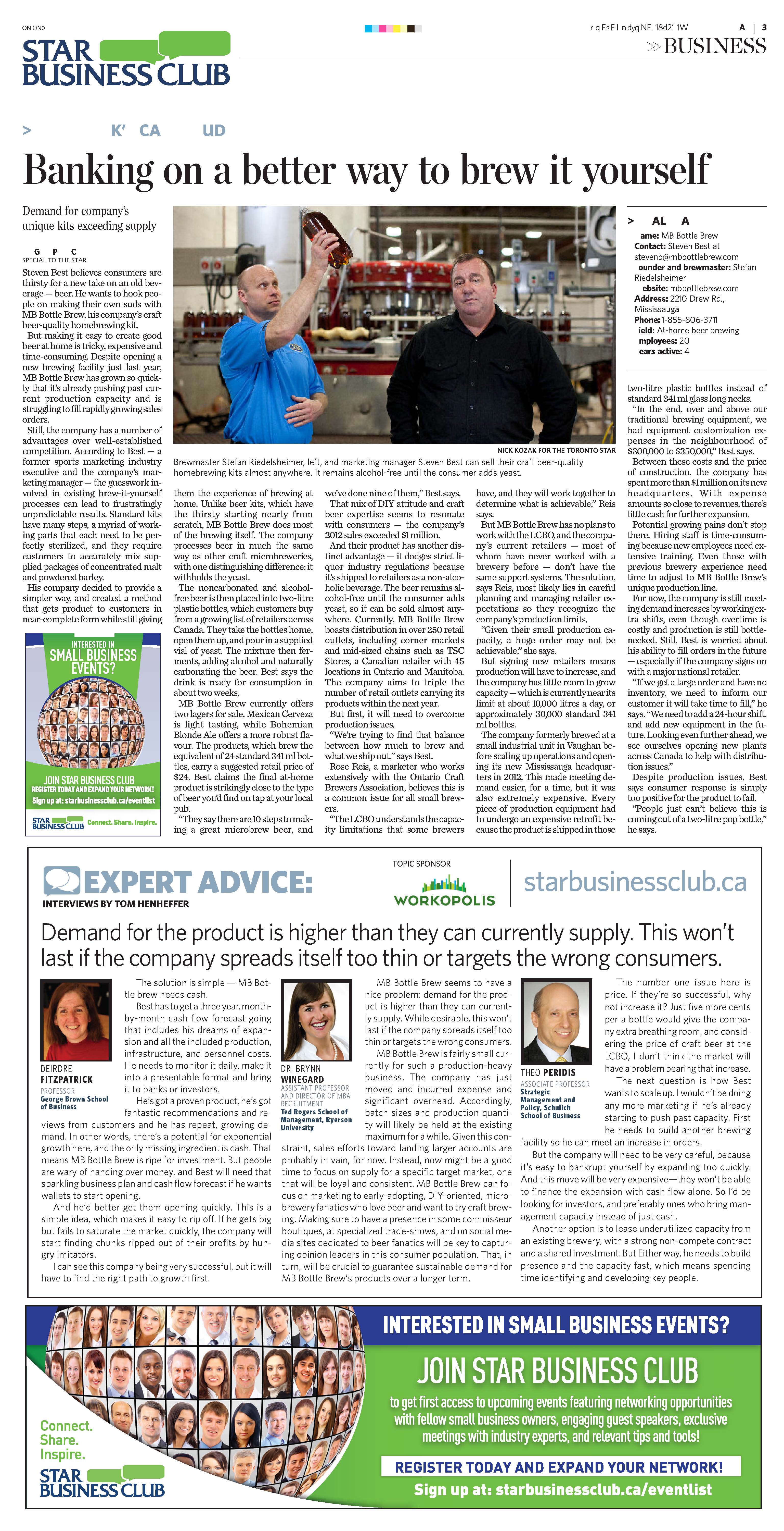 NEWSPAPER STORY: Our client, MB BOTTLE BREW was featured in a story in THE TORONTO STAR.